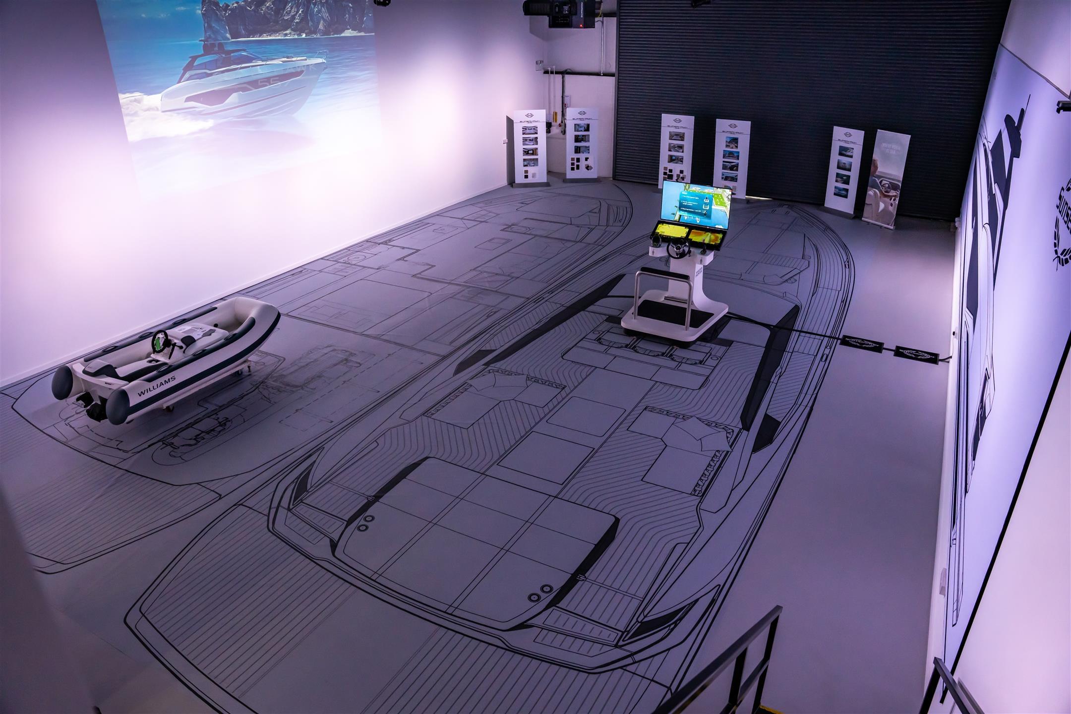 Alan, zemine basılmış gerçek boyutlu Genel Düzenlemeler (teknede gezinmek için mükemmel), daha önce paylaşılan 2D görselleri hayata geçirmek için iç kumaş örnekleri ve merakla beklenen özel bir sanal gerçeklik gezintisi ile olağanüstü bir sergi alanına dönüştürüldü.
